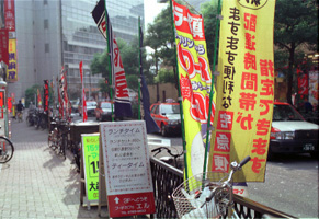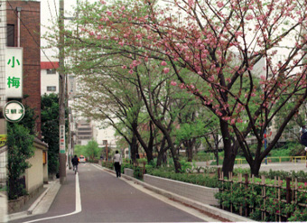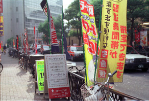 旗のある道
